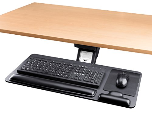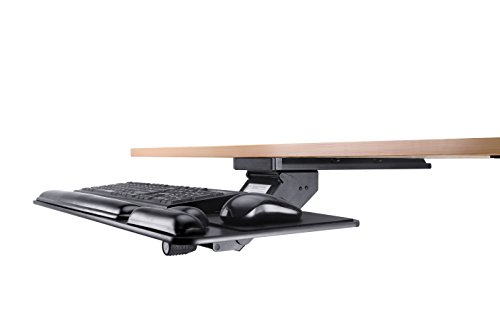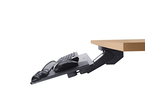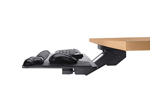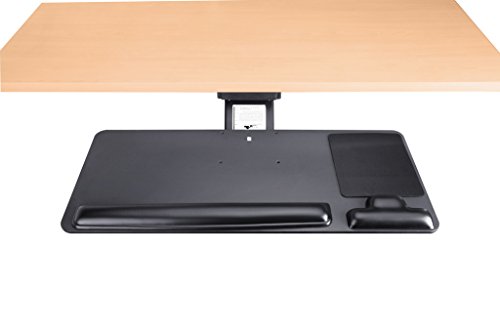 Big platform,spacious working space: 26.7'' (680 mm) ×11.4''(290 mm),it’s made by Phenolic resin and can support your arms strongly. There is GEL wrist rest for keyboard and mouse.Let you no longer worry about the narrow worktop by using this keyboard tray underdesk.