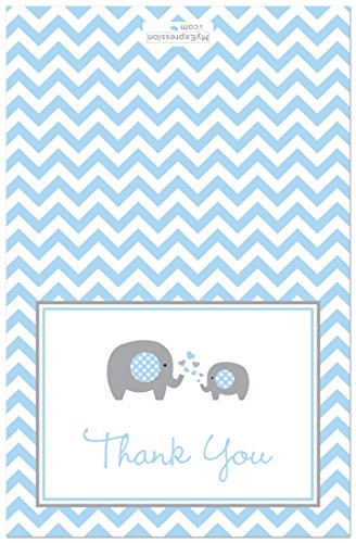 50 Cnt Grey Blue Chevron Elephant Baby Shower Thank You Cards