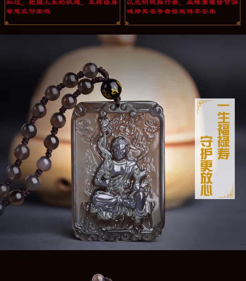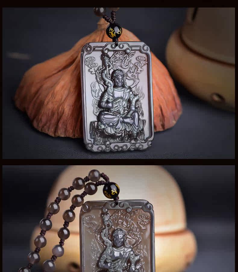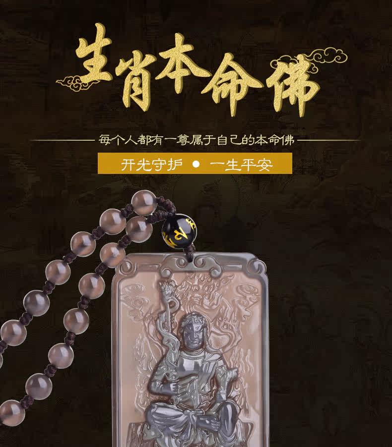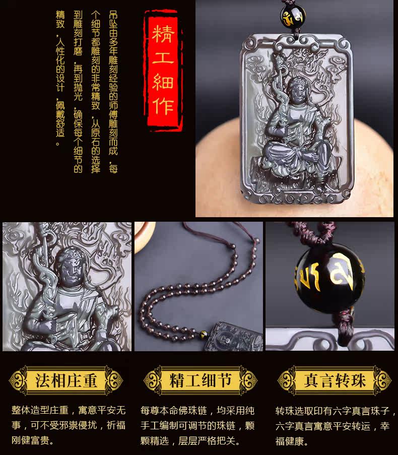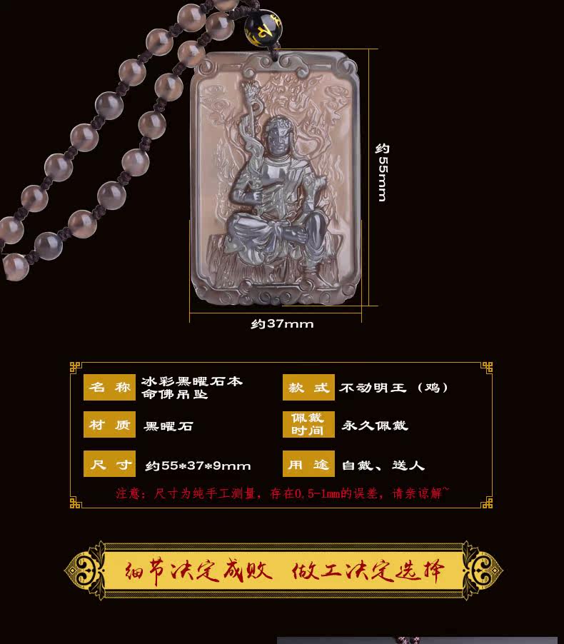 开光天然黑曜石不动尊菩萨项链不动明王生肖鸡本命佛吊坠男女饰品