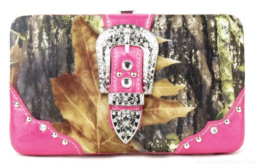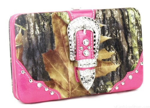 (ANYTHINGEVERYTHINGSHOP)/Accessories/Wallets, Money Key Organizers/DIRECT FROM USA/BUCKLE CAMO CAMOUFLAGE WALLET WITH RHINESTONE-HOT PINK