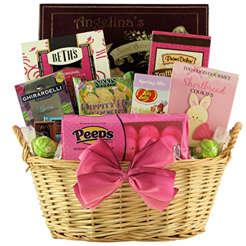 -. Feature : Our "Delightful Easter Sweets" Gourmet Chocolate & Sweets Gift Basket is the perfect way to send sP.R.Ingtime wishes to your friends and family this Easter Holiday. / This basket includes a Ghirardelli Milk Chocolate Impression Gift Bag, Peeps Marshmallow Chicks, Lindt SP.R.Ing Milk Chocolate with White Chocolate Truffles, Nikki's Hippity Hop Cookies, Angelina's Sweet Butter Cookies and more. / A great way to let them know you are thinking about them. / Fast Shipping & Superior Customer Service / Dim: 14"L x 10"W x 10"H
