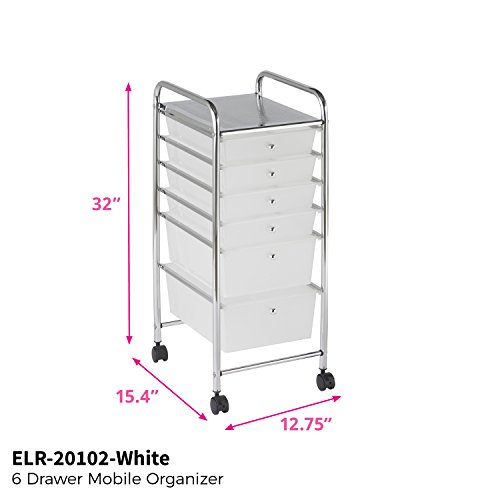 This stylish rolling organizer from ECR4Kids brings order to your home, office, or classroom. Each drawer is carefully thought out in size, weight capacity and ease of use to make storing your belongings quick and stress-free. Don't forget about the additional surface area on top for easy access. Move this unit from room to room using the four durable casters (2 locking). The compact size of this organizer features significant storage in a small footprint. This makes it possible to fit almost anywhere, keeping your files, papers, art supplies, crafts, tools, toys and more safely stored away.Feature