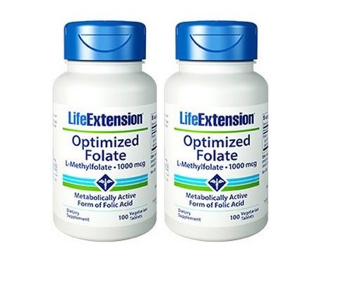 Life Extension Vitamins & Supplements - Optimized Folate (l-methylfolate), 1000 Mcg, 100 vegetarian tablets (2 Pack = 2 Bottles, 200 VCAPS Total)Feature