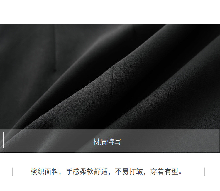 | 面料成分: | 面料:70.9%聚酯纤维、21.9%粘纤、7.2%氨纶 里料:100%聚酯纤维 |