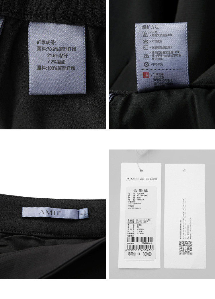 | 洗涤标准: | 不可漂白40℃以下手洗悬挂晾干110℃以下垫布熨烫不可浸泡不可干洗 |