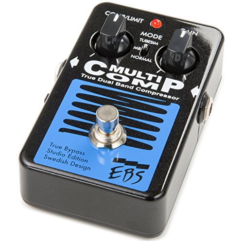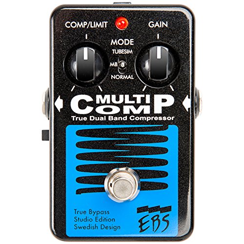 Studio : EBS Sweden AB Publisher : EBS Sweden AB Binding : Electronics Product Description The MultiComp can make a good sounding instrument sound even better. Once you've tried it, you'll never want to play without it! The EBS MultiComp is equally good for guitar as bass, and is the best selling EBS pedal ever reaching 'Hall of Fame' status at some of the most well known online stores. The MultiComp may be the easiest compressor around to dial in. Since it is so smooth and well though out, all you need is to set the level of Comp/Limit with one knob, Gain with another, and then choose the type or mode of compression between Tubeism, Multi Band (MB) and Normal. Done! For those that need more, there is an Active/Passive switch on the side as well as an internal trim pot for the Threshold located under the hood. The MultiComp was first introduced in 1998. From the 2008 edition improvements added 3 dB higher headroom, higher sensitivity and new analog circuitry with higher dynamics and lower noise, as well as true bypass switching technique. 2015 introducing the Studio Edition with optimized signal path, new design, new signal relay switching technique, protection against over voltage up to 18V and possibility to power the pedal with anything from 9-12V DC. 0