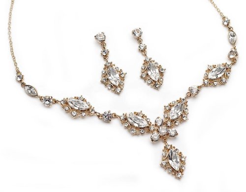 -. Binding : Jewelry -. Brand : USBride -. Department : womens -. Feature : Jewelry set features a gold-plated setting / Modern and vintage swirling design encrusted with rhinestones / Necklace measures 13-1/2" with a 2" extender and lobster claw clasp / The earrings measure 1-3/4" -. Model : JSA-618-G -. ProductGroup : Jewelry -. ProductTypeName : FASHIONOTHER -. Title : USBride Gold-Tone Antique Crystal Necklace & Earrings, Bridal Jewelry Set 618 G