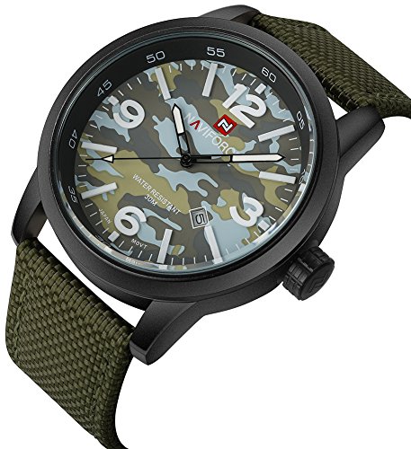 원본상품명:NAVIFORCE メンズ ナイロン バンド 合金 ケ?ス 迷彩 ダイヤル 防水 カレンダ? 日付 ミリタリ? 軍 クォ?ツ 腕時計 (グリ?ン)