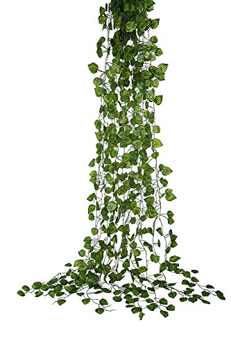 Leeyifan Watermelon Artificial Hanging Plant 78 Feet Silk English Ivy Vine Garland Arrangement Faux Fake Flower Green Leaves Wreath Home Kitchen Garden Office Wedding Wall Banister Decor Pack of 12