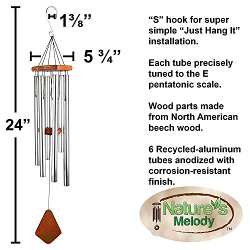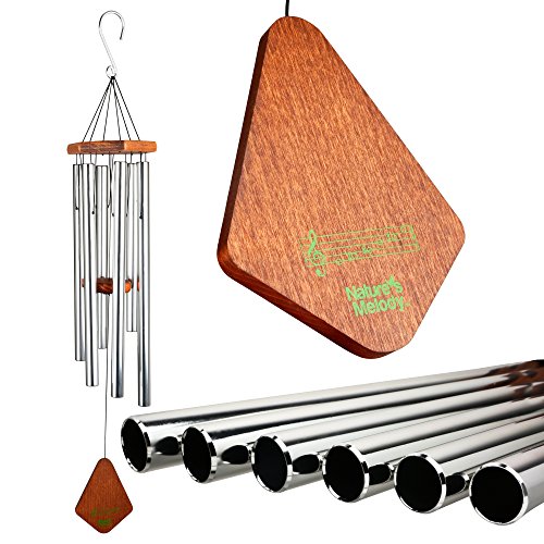 Nature's Melody Wind Chimes for Outdoor, Silver Tuned Unique Metal Tubes, 24”, by