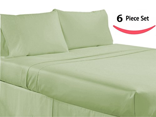 - 6 Piece Bonus Sheet Set - 1 Flat Sheet, 1 Fitted Sheet, 2 Pillowcases and Bonus 2 Pillowcase