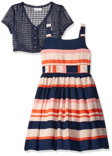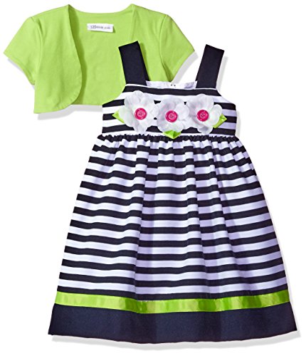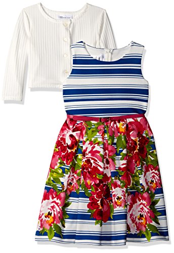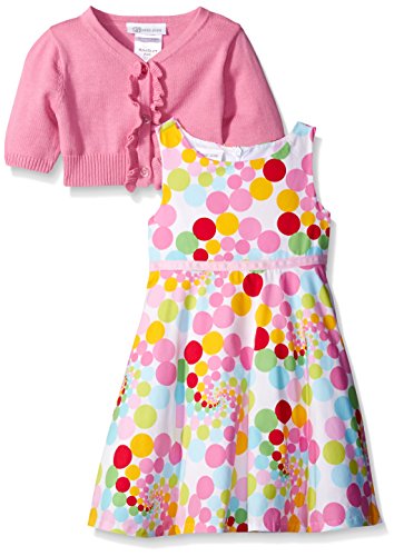 Two piece multi colored dot dress with pink button front ruffled sweater. Bonnie Jean Dress has made fashionable, high quality, affordable and age appropriate dresses and playwear sets since 1935.Feature