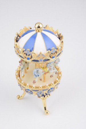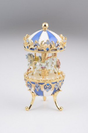 Blue Faberge Egg with Horse Carousel
