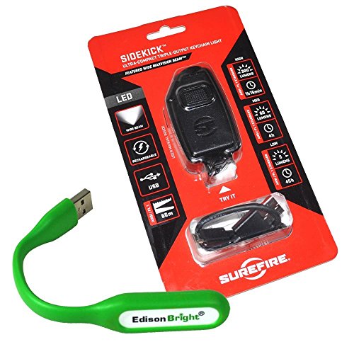 SureFire Sidekick 300-Lumen Ultra-Compact Triple-Output rechargeable Keychain Light, Black with EdisonBright USB reading light bundle