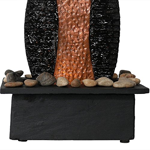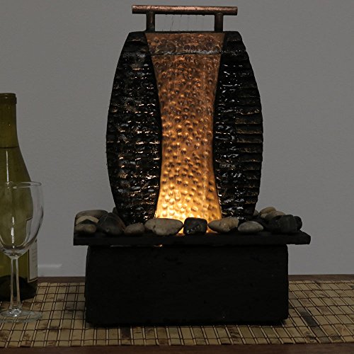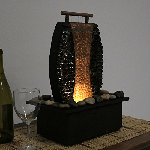 Includes one tabletop fountain, decorative rocks, a submersible TP-200LV electric pump with 0.25 inch diameter hose, a 1.5 watt LED finger light, and foot pads to safeguard your table's surface.