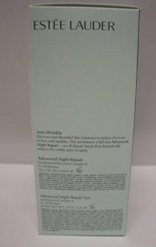 -. Feature : Full-size Advanced Night Repair Synchronized Recovery Complex II (1 oz.) / Advanced Time Zone Age Reversing Line/Wrinkle Crème SPF 15 (0.5 oz.) / Advanced Night Repair Eye Synchronized Complex II (0.17 oz.)