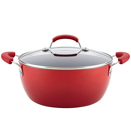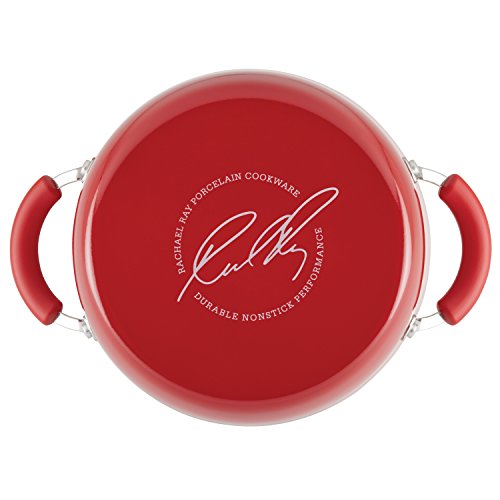 Rachael Ray Hard Enamel Nonstick Covered Casserole, 5.5 quart, Red