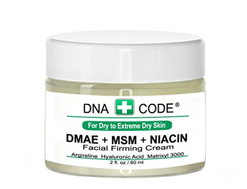 This high concentration of DMAE + MSM + NIACINAMIDE Firming Cream w/ 100% pure Hyaluronic Acid, Argireline and Matrixyl 3000 ensures your skin's ability to quickly mend itself and firm up stressed and oversized pores. Giving your skin a smooth and clear surface that creates a glow of youth. This cream is light and can be put on, over or under makeup. The firm appearance occurs within 20 minutes. Significant improvement in:Overall appearance of aging skin, forehead lines,coarse wrinkles,eye area, lip area and smile lines, sagging skin. 72% Organic and 100% Vegan.