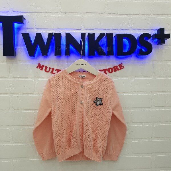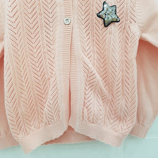 별 스팽글 탈부착 장식이 포인트인 여아 변형조직 가디건, ?은 조직감으로 가볍게 착용이 가능함
