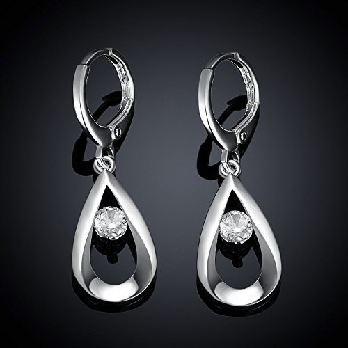 Fajewellery Damen 925 Silber Swarovski Element-Kristall Teardrop Solitar Zirkonia Scharnier Ohrringe