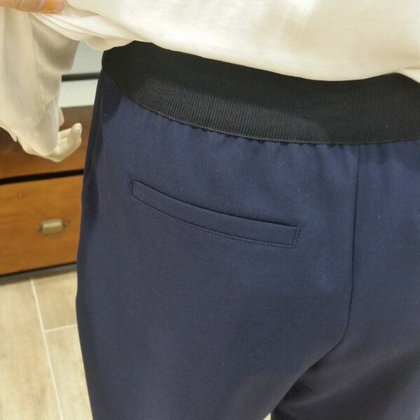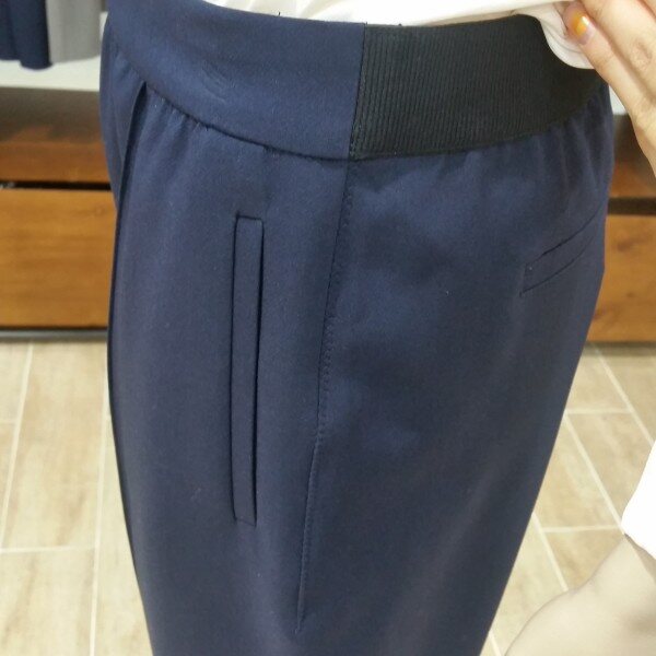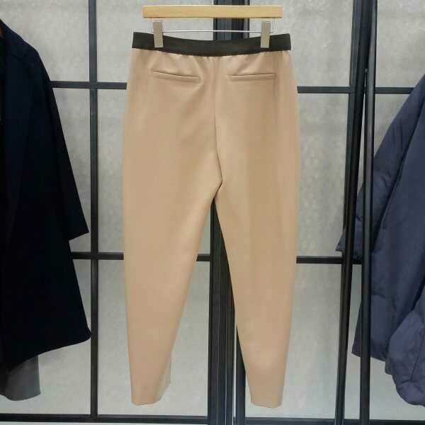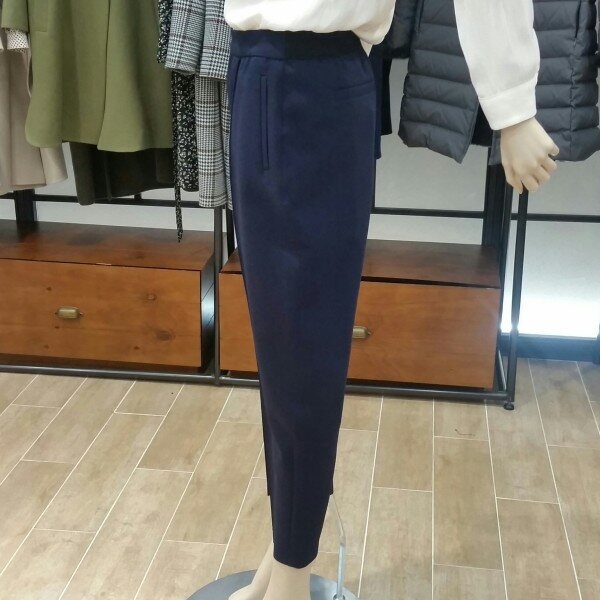 허리뒷부분이 벤딩으로 제작된 편안한 세미 배기 팬츠 입니다.양쪽다리 정면부분과 하단측면,포켓옆라인을 따라 디테일이 들어가있습니다.총장길이는 55사이즈 기준으로 91센치 입니다.