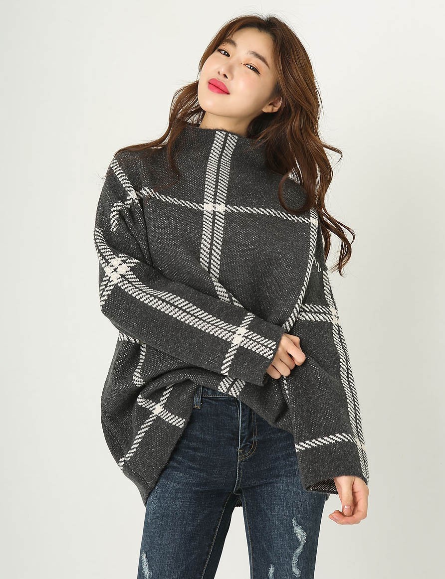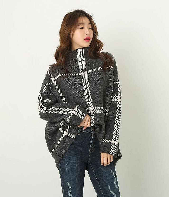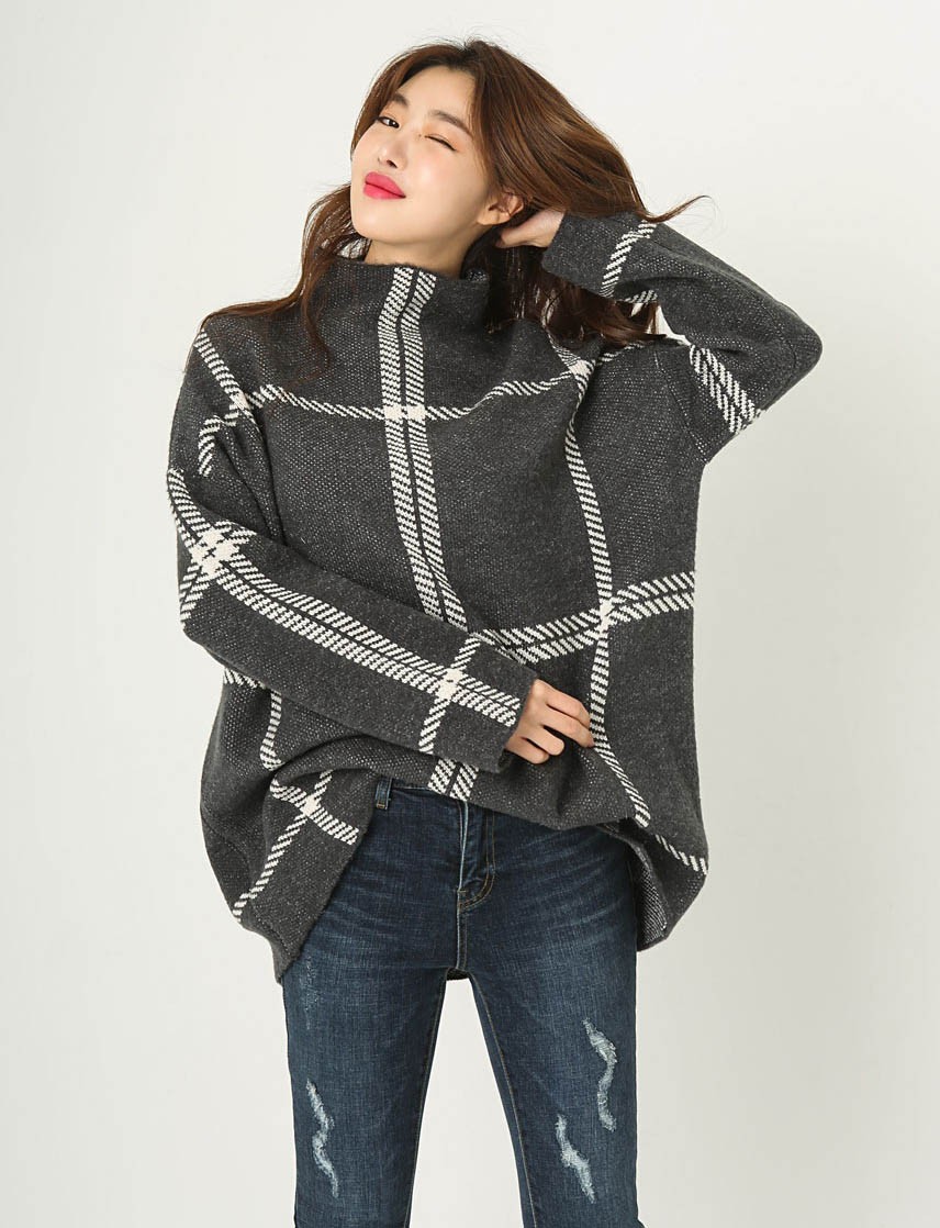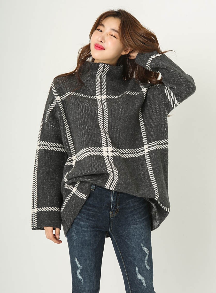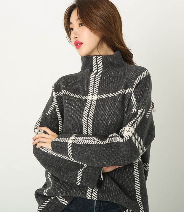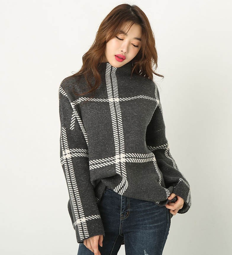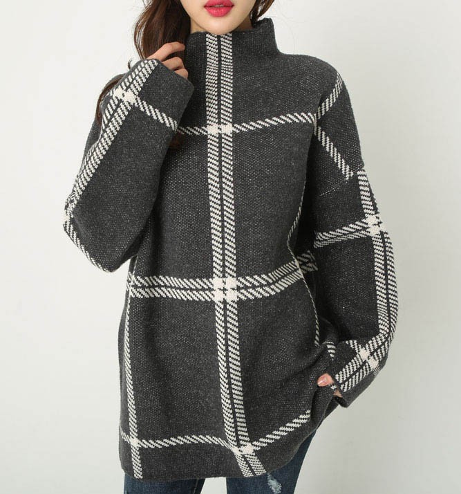 【入荷後営業日2,3日以内出荷予定 通関待ちや不良により出荷遅くなる場合はメールにてご連絡いたします。メール受信設定によっては正常に受信されない場合はございますので、 弊社からのメールを予め受信頂くようご設定くださいませ。】 トップス ニットセーター ニット セーター ニットチュニック 配色 チェック柄 レディス レディース 春 新作 2018ハイネックゆったりニットチュニック◆サイズ:着丈71袖丈42胸囲108◆素材:コットン、ポリエステル