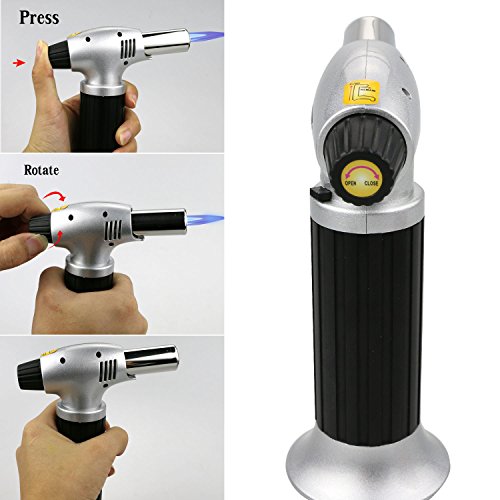 Buluri Culinary Butane Torch, Windproof Culinary Torch, Blow Torch Butane Torch Flame Gun With Safety Lock 1300°C for Hiking, Camping, Cooking, Kitchen, Creme Brulee, BBQ(Butane Gas Not Included)