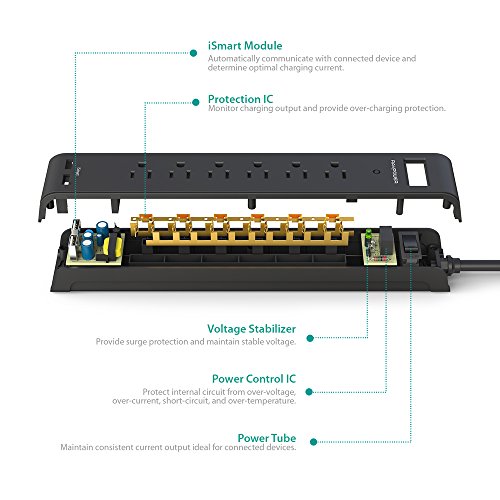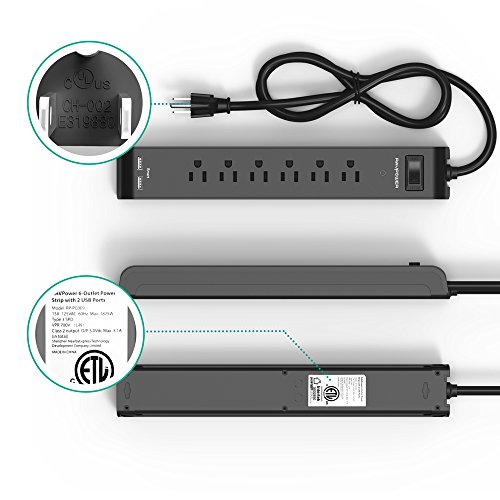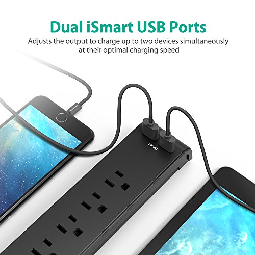 User Focused Surge Protector: Features a 5 ft long cable; bottom placed mounting ports; built-in on / off switch; and dual USB ports for a total output of 3.1A