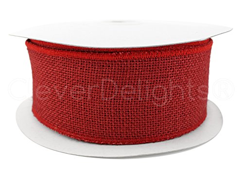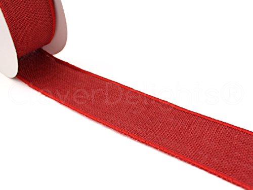 CleverDelights 2.5" Burlap Ribbon - Wired / Finished Edges - 25 Yards - Red Color - Super-Fine Weave