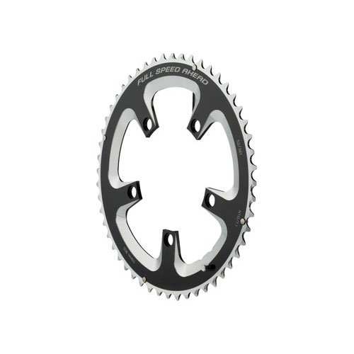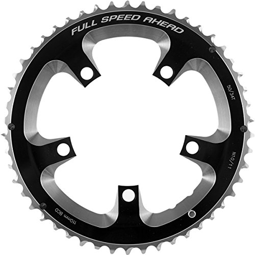 Studio : FSA Publisher : FSA Binding : Misc. Product Description Full Speed Ahead's attention to detail makes its Super Road Chainrings perfectly designed for its own cranksets, but they're ideal for Shimano and SRAM cranksets as well. They're ramped and pinned, so you'll get top-notch shifting quality with no chain suck. The Super is made from CNC-machined AL7075 T6 alloy. The design leaves more material in place near the interface points between ring and spider. This thickness gives the Super Chainrings added flex-resistance--ideal for hard accelerations. FSA makes three Super Road Chainrings: A 53t/130mm, and 50t/110mm and 52t/110mm rings. They are available in Grey SL-K and Black. 0