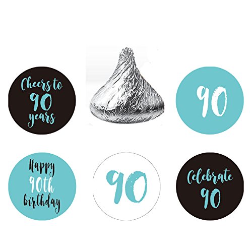 Blue 90th Birthday Party Favors Stickers, Round Candy Labels Fit Hershey’s Kisses, 200 Count
