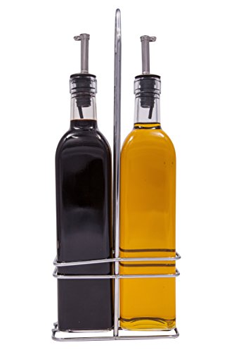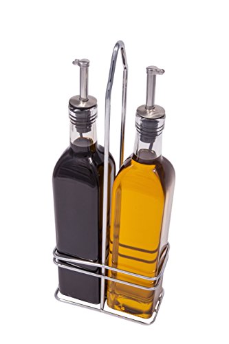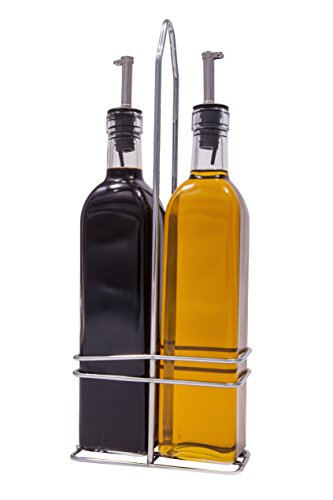 (Foamily)/Pet Supplies/Feeding Watering Supplies/DIRECT FROM USA/Oil and Vinegar Glass Bottle Cruet Set with Stainless steel Rack Holder - Removable Cork spout ...