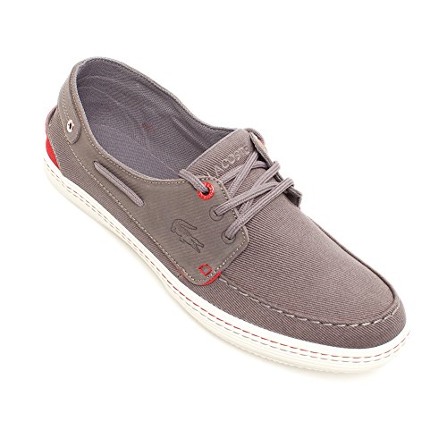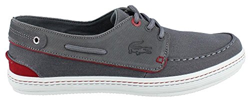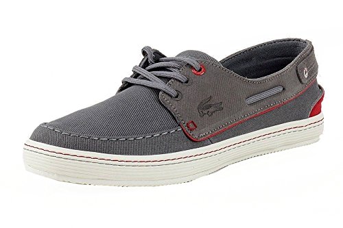 Product Description Men's Lacoste, Sumac 10 Lace up Boat Shoes This great nautical style will be perfect for your summer days Leather and canvas upper with logo and grommets for added appeal Lace up closure for a secure fit Fabric lining Cushioned footbed for added comfort Rubber outsole 0