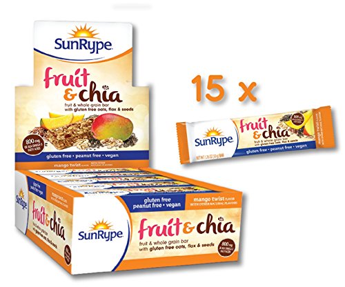SunRype Mango Twist Fruit & Chia Bars - Vegan, Gluten-Free, Kosher, Peanut-Free (Case of 15)