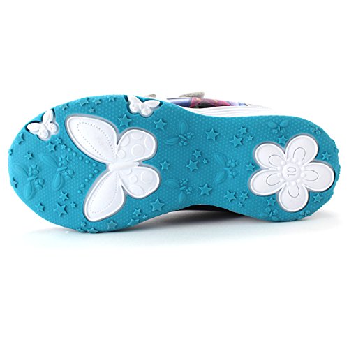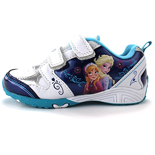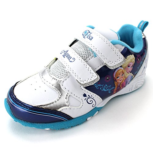 Now you can really let the storm rage on wearing these adorable Disney Frozen Elsa and Anna lighted sneakers. These Disney Frozen Elsa and Anna little kid lighted sneakers shoes feature colorful graphics of the sister duo Elsa and Anna, slip resistant soles, lightweight, and Velcro straps for a perfect fit on your child's foot! And, best of all, these gorgeous Frozen shoes light up with every step, but while they are lighting up every step you take imprints awesome graphics in sand, snow and water! Perfect footwear choice for any Disney Frozen, Elsa, or Anna fan!Feature