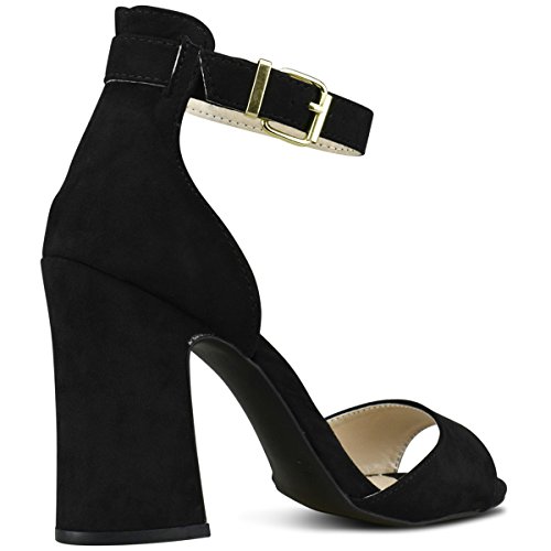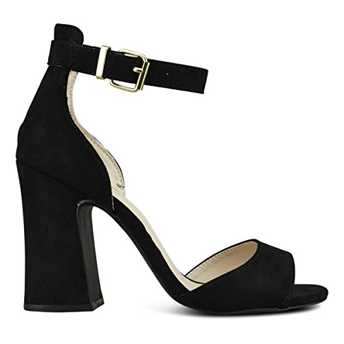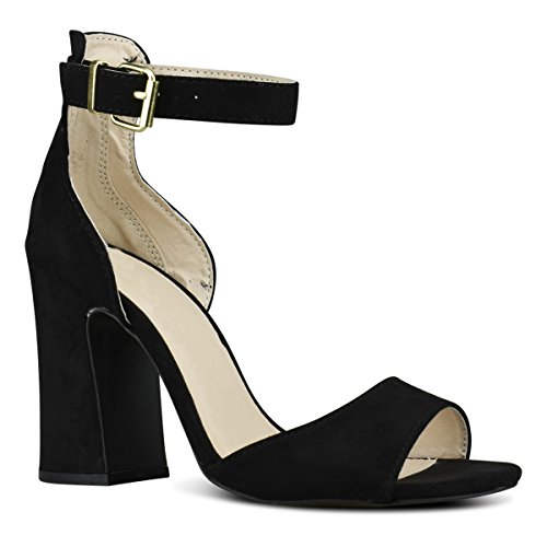 Product Description These?open toe heeled sandals feature a beautiful chunky heel for perfect fit and height. Finished with a back zipper closure and adjustable ankle strap and cushioned insole for comfort. 0