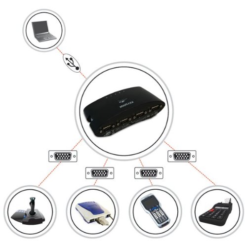 Serial Adapter allows up to four serial devices to be connected to a single USB computer