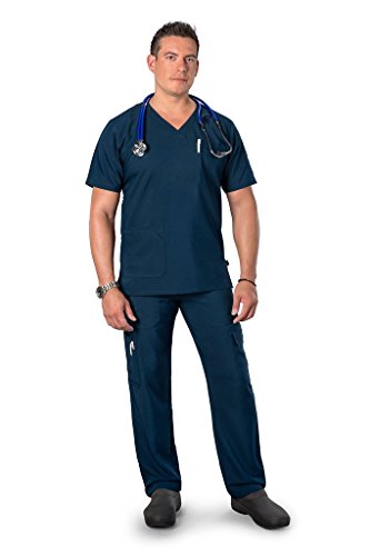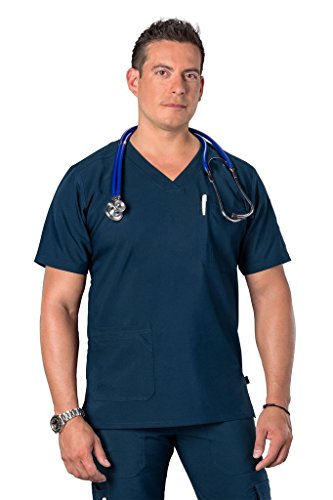Coast Oak Clothing Men's Anti-Microbial Stretch Wrinkle & Stain Resistant Dana Scrub Top Navy