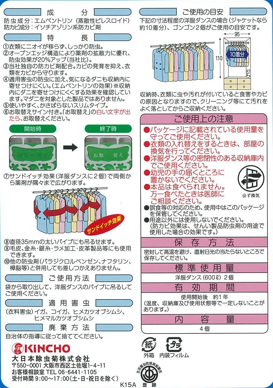 Japan Personal Care - Chest of drawers in Gongon 4 pieces odorless type one year effective clothes for dancing (by insecticide mildew mite) *AF27*
