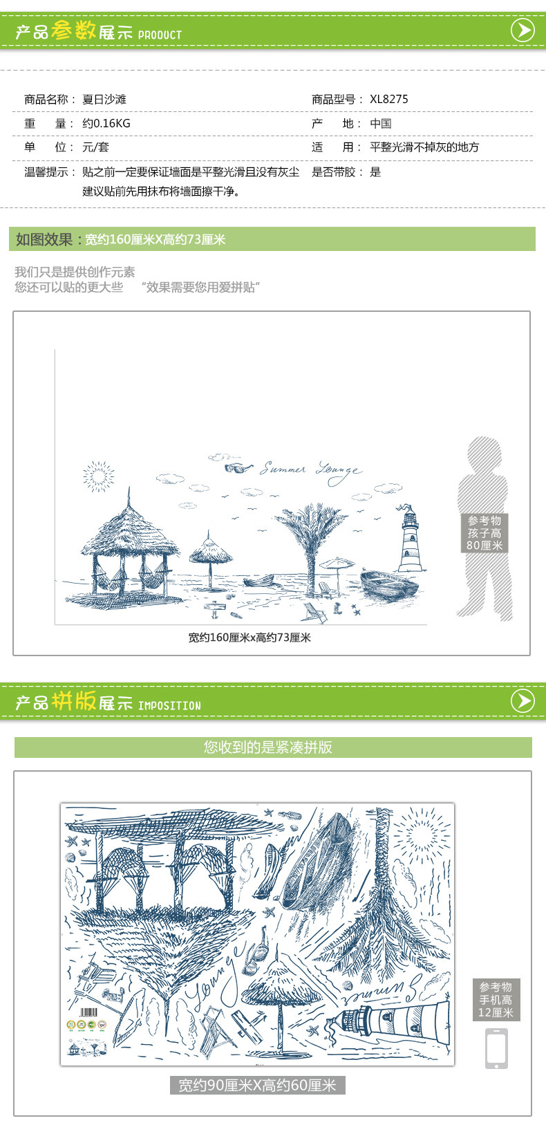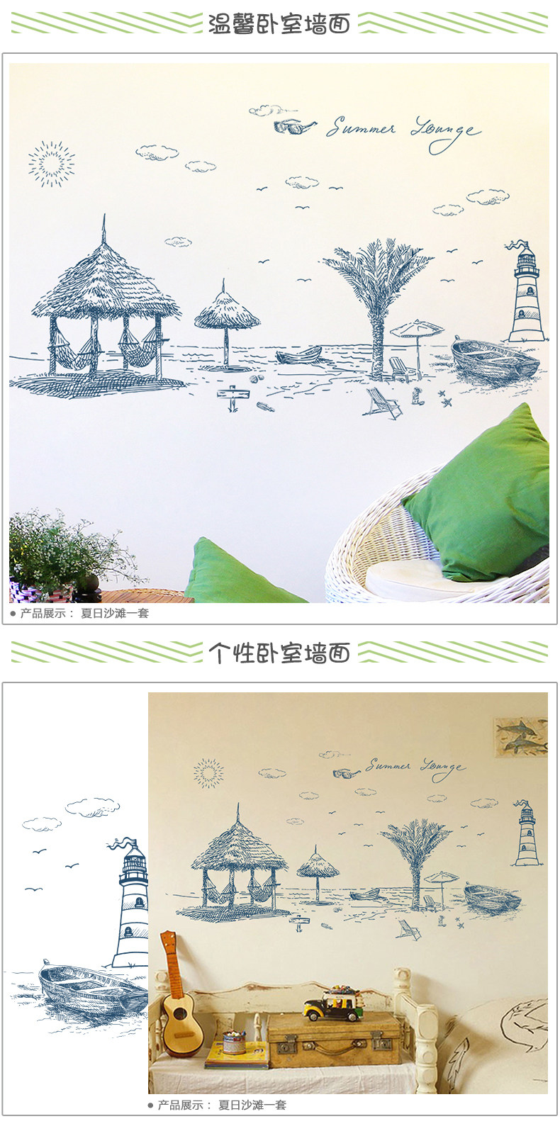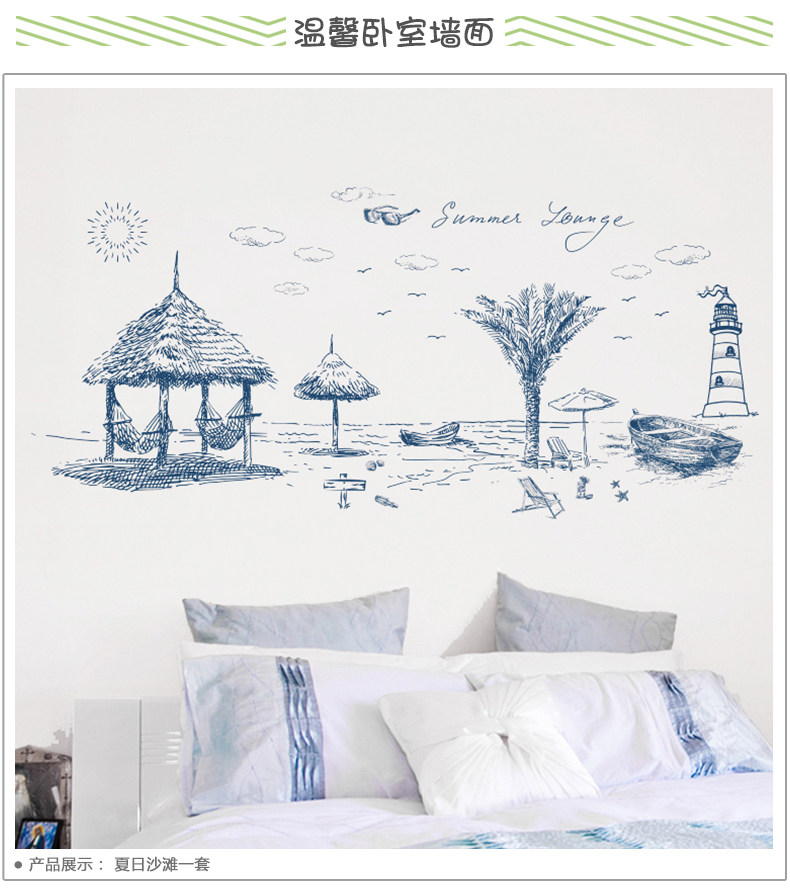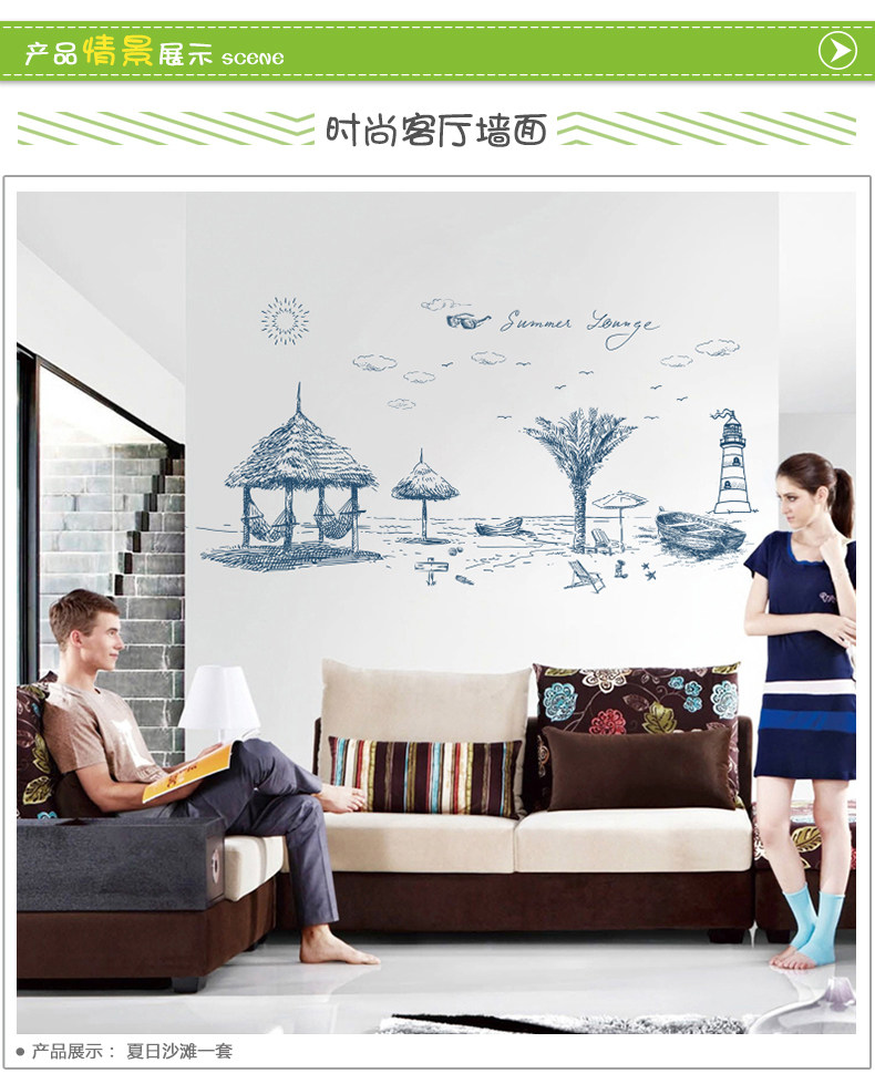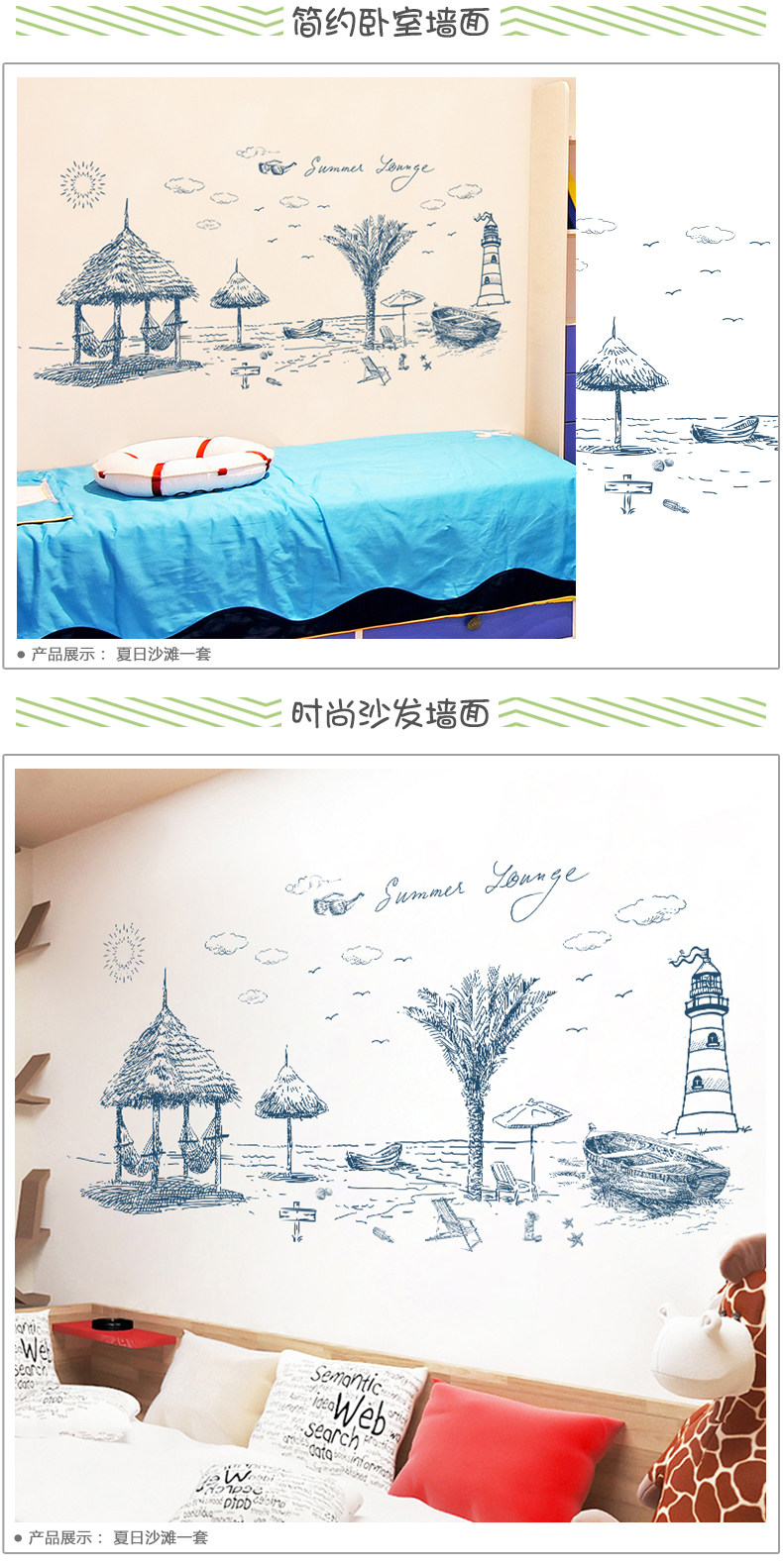 沙滩墙贴客厅沙发背景墙壁装饰卧室床头玄关走廊商场酒吧贴纸贴画