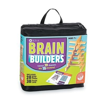 -. Feature : TOYS THAT TEACH: KEVA Brain Builders from MindWare will train your brain to turn 2-dimensional diagrams into 3-dimensional reality. Approach KEVA from a whole new angle with this interactive STEM tool! / STRENGTHENS STEM: Turn technical drawings into fun, recognizable objects. The 2-D cards show the design from different angles highlighting the front, side and overhead view and increase in difficulty from beginner to expert. / PROBLEM SOLVING: Manipulate your KEVA planks to successfully duplicate the balance, proportion, composition and geometry featured on each card. As each build becomes more challenging, patience and confidence is gained through trial and error. / FUN AND REWARDING: Once you think you've solved the blueP.R.Int, flip it over to check the solution-try to resist the urge to peak! From picnic tables and rowboats to swans and snails, you will be amazed what your brain will build. Time to put your 3D imagination to the test! / INCLUDES: 20 durable KEVA planks, 30 full-color double-sided cards in a zippered carrying case.