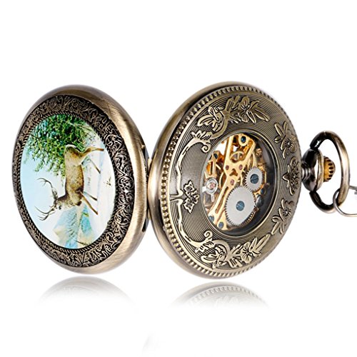 -. Feature : Condition: 100% Brand New High Quality Pocket Watch. / Design: Bronze Elk Dear Pattern Full Hunter Skeleton Hand Winding Mechanical Pocket Watch. / Function: Hand Winding Mechanical, No Need to Use Battery. Twisting the top button about 15-20 arounds, Tightening a walk for 24 hours, Please wind up the watch before use the watch. (Notice: Please do not over winding up the watch if you feel the crown is tight). / Perfect Gift: The Pocket Watch Come with a Gift Bag. The Perfect Gift for Your Family or Friends on Birthday or Christmas Day. / Purchase Guarantee: If You Have Any Dissatisfaction, Please Email to Our After-sale Team, We Will Refund 100% of Your Money, No Question Asked.