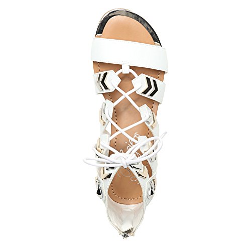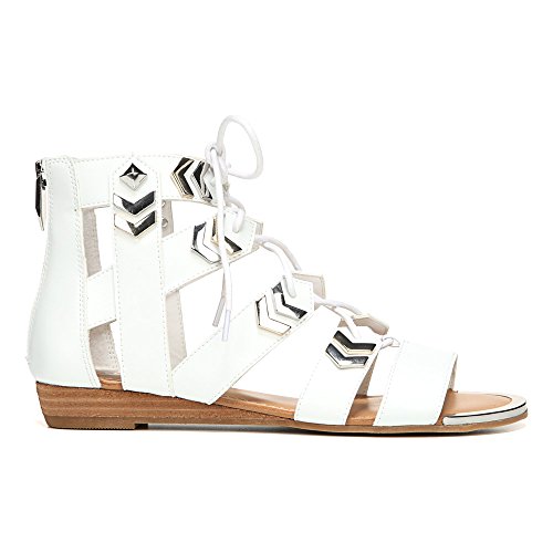 Product DescriptionM 5-10, 11 gilly sandal with demi wedge and metallic embellishments0