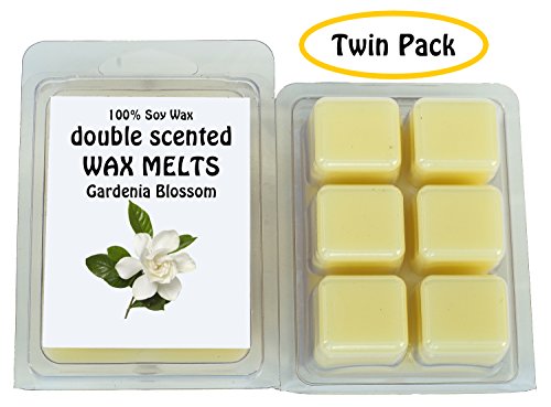 Gardenia Blossom DOUBLE SCENTED SOY WAX MELTS - WAX TARTS (Twin Pack-6.5oz). The Sweet Floral, Silky Aroma of Fresh Gardenia Flowers.
