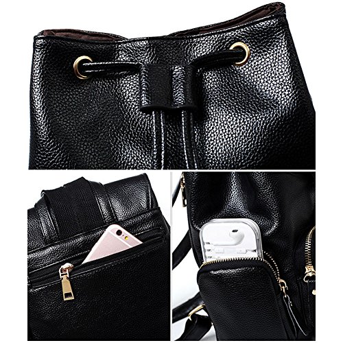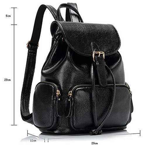 -. Feature : Material: High Quality PU Leather / Dimensions: 11.4'' L, 4.7'' W, 11.4'' H, Adjustable back straps for carrying / Structure: 1 main pocket, 2 side zipper pocket, 1 front ziper pocket and 1 back ziper pocket. Internal: 2 slip pocket,1 ziper pocket, Front flap covers the drawstring closure with a magnetic snap for estra security / Enough Space: It is quite roomy and plenty of space to holds all you small daily essentials, as small notebooks, cosmetics, glasses, wallet, keys, earphone, power and cell phone ect / This cute fashion Mini backpack, Idea for your casual life style, as shopping, school, work, travel, weekender etc
