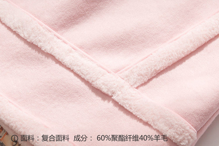 | 主 料:面层 60%聚酯纤维40%羊毛 底层 聚酯纤维配 料:撞布:面层 聚酯纤维 底层 60%聚酯纤维40%羊毛里 料:聚酯纤维颜 色:粉色 |