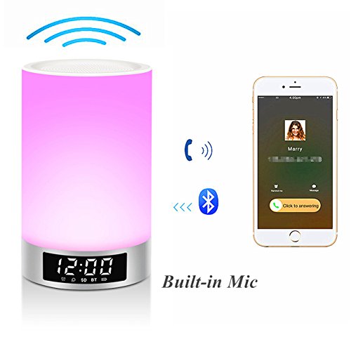 Jacaranda L5 Bedside Touch Lamp&Smart Night Light, HD Sound Portable Bluetooth Speaker with RGB Color Changing Lights, Built-in Mic, Bedroom Sleep Night Light+Wake Up Alarm Clock for Baby/Kids, Silver