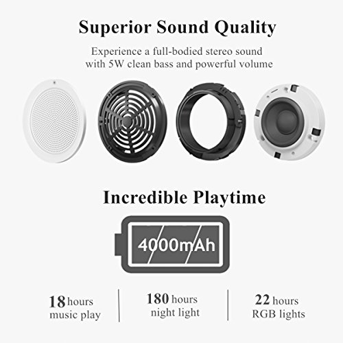 - INDOOR USE: bluetooth speaker for Yoga music paly, Sleep night light, table lamps, in livingroom, kids/baby's room, reading room or as a party light/speaker. OUT DOOR USE: camping lamp, portable speaker, for camping, BBQ...