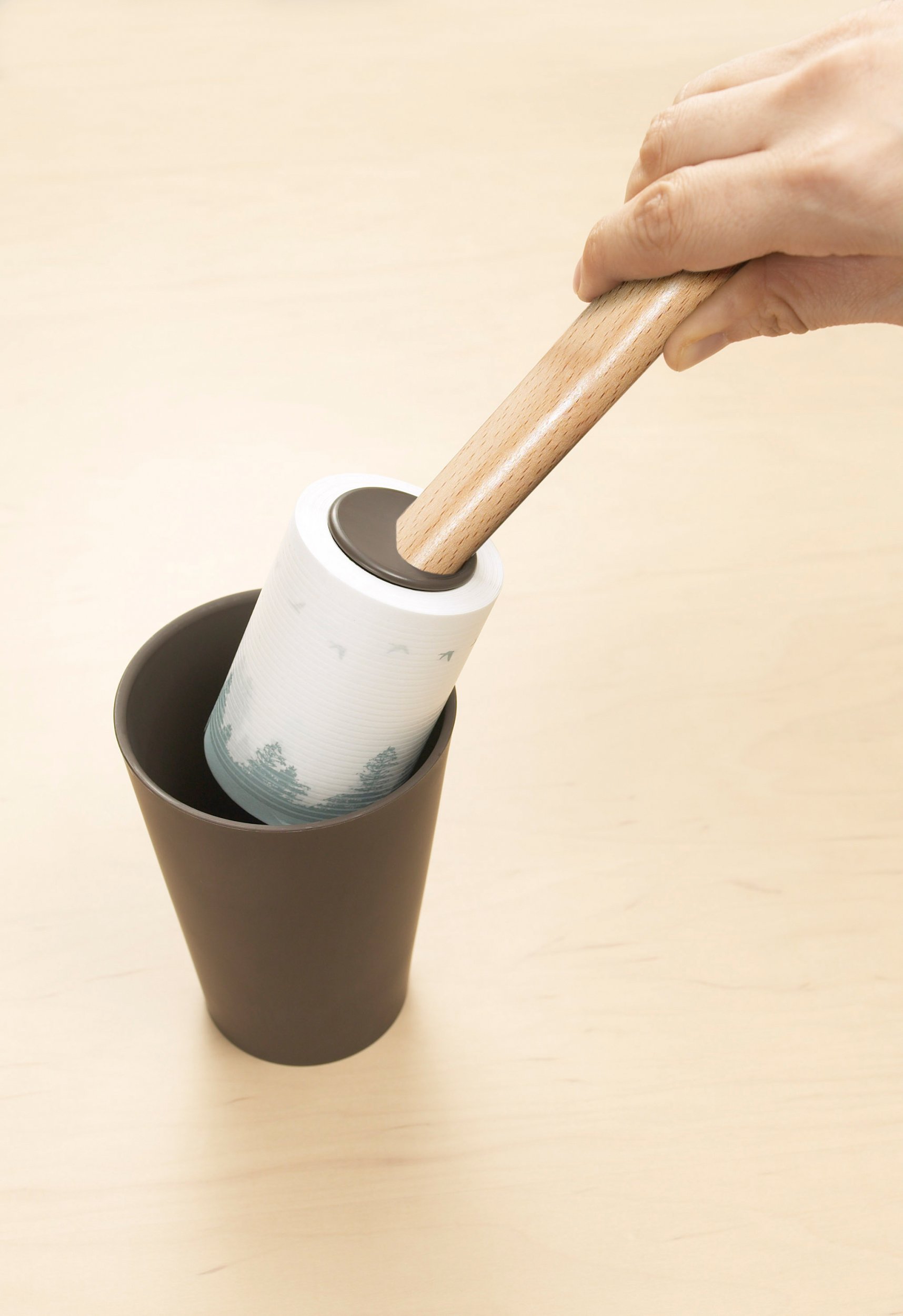 "Tidy Cup Roll Cleaner Body Brown" is a sticky cleaner with a case like a cup.