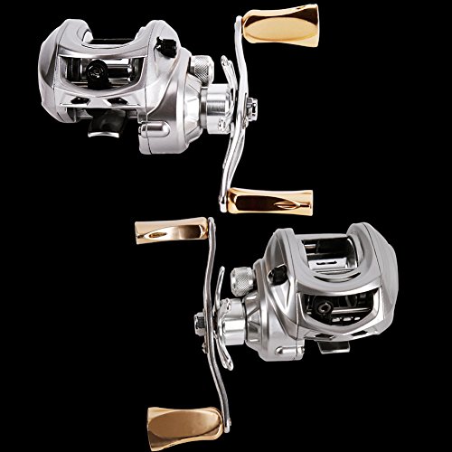 -. Binding : Misc. -. Brand : Sougayilang -. Feature : UNMATCHED -Sougayilang Magnetic Tuned brake delivering 12 lbs/120yards of drag offer the ultimate in a high performance of baitcasting fishing reel. / SMOOTH-CNC machined aluminum spool, High-tensile gear, aluminum high speed 7.0:1 gear ratio, superior shielded 9+1 corrosion resistant ball bearings. / ACCURATE - Magnetic Brake System gives consistent brake pressure throughout the cast. has a adjustable button on the reel surface.magnetic force from 1-10. / PERFORMANCE - Low profile design with low noise gear structure delivers the ultimate performance.better Stability, reduce the birds nest.suitable for novice and skilled. / LIGHT AND STRONG - Silver color anodized CNC Machined aluminum forged spool offers maximum strength while reducing weight.Stain steel gold handle makes stronger for fighting with fishes. -. IsAutographed : 0 -. IsMemorabilia : 0 -. Label : Sougayilang -. Manufacturer : Sougayilang -. ProductGroup : Sports -. ProductTypeName : SPORTING_GOODS -. Publisher : Sougayilang -. Studio : Sougayilang -. Title : Sougayilang Magnetic Tuned Brake Low Profile Baitcasting Fishing Reel Left/right Hand